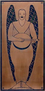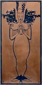 Vier Kupferbildplatten an der Fassade der Wohnanlage Rigaer Straße 65, Berlin-Friedrichshain, 2004