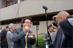 Anbringen der Tafel und Einweihung in der Kaiser-Friedrich-Straße, Berlin-Charlottenburg mit Kolja Kleeberg